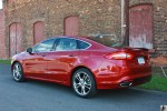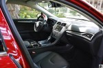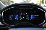 As mentioned, the key to getting anywhere with the Fusion is to keep the engine awake. The turbocharged four-cylinder is capable of 240 hp and 270 lb-ft torque. No doubt a great and economical engine, the 2.0L Ecoboost felt underpowered when coupled with the seemingly outdated six speed automatic. Most competitors have gone to seven or eight gears, and I’m not really sure why Ford chose not to. Shorter gears would have allowed more opportunity for the engine to feel alive. Assuming full manual control of the gearbox is as simple as sliding the gear selector back into S and making commands with the wheel-mounted paddle shifters. Holding gears longer results in a more responsive drive, but there’s no accompanying symphony. The Fusions isn’t one of the better sounding blown fours. You also pay a penalty for working the engine so hard. Our as-tested fuel economy over the week’s 600 miles came in at a disappointingly low 23.7 mpg. Pay more attention to the tiny digital tachometer and you can see consumption rise to the high 20s and even low 30s if you’re careful. The AWD drivetrain also accounts for a few lost mpgs.
