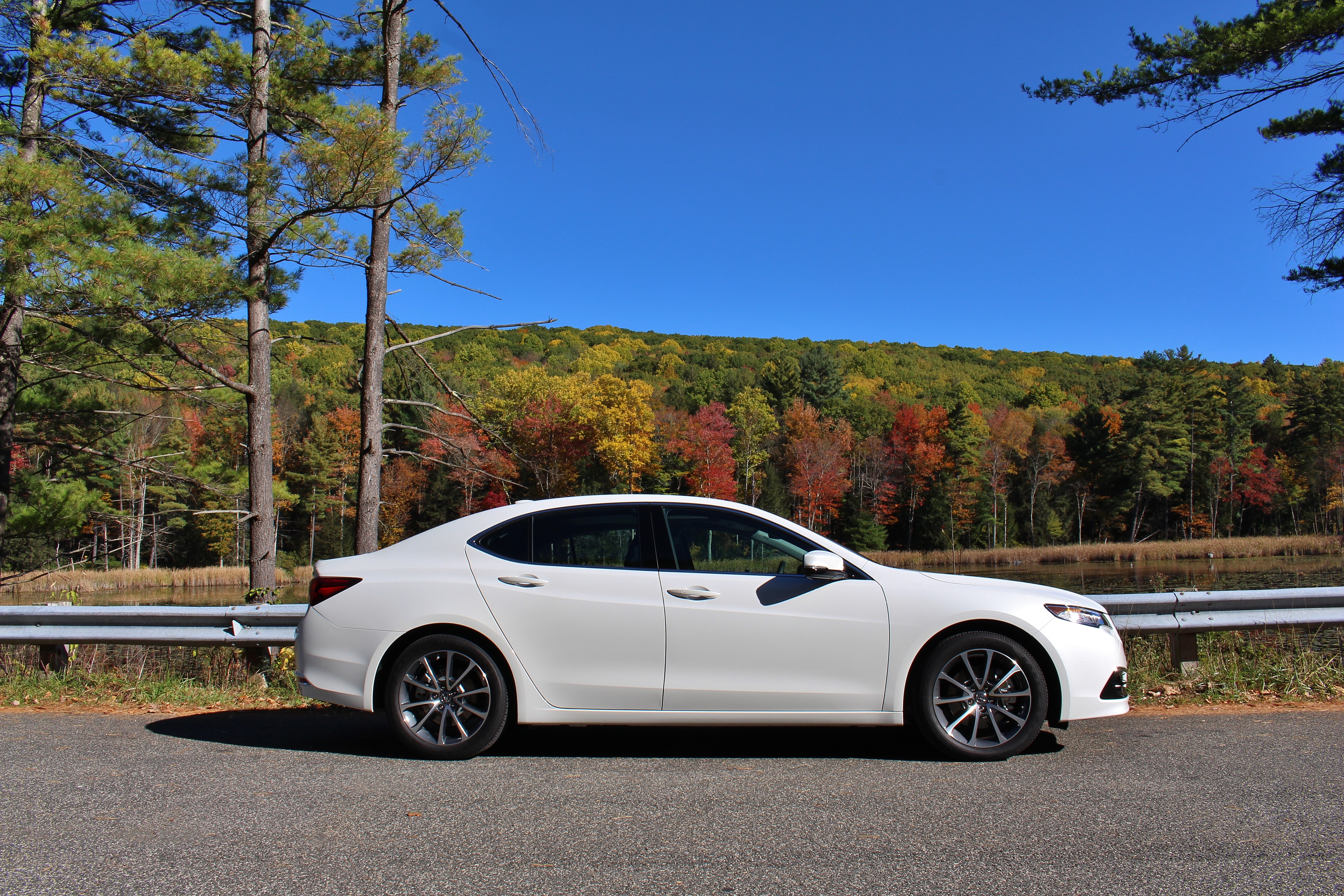 There are, however, a few problems. The V6 in our tester sits far forward in the nose. You can feel the effect of this placement, even on normal roads. Our TLX tester also arrived shod with mud and snow tires, and not the high-performance all seasons that come standard. In the early Fall, that type of tire felt out of place and most likely negatively affected the handling. We reckon that the 2.4L four-cylinder TLX with P-AWS, or precision all-wheel steering, would be more nimble.