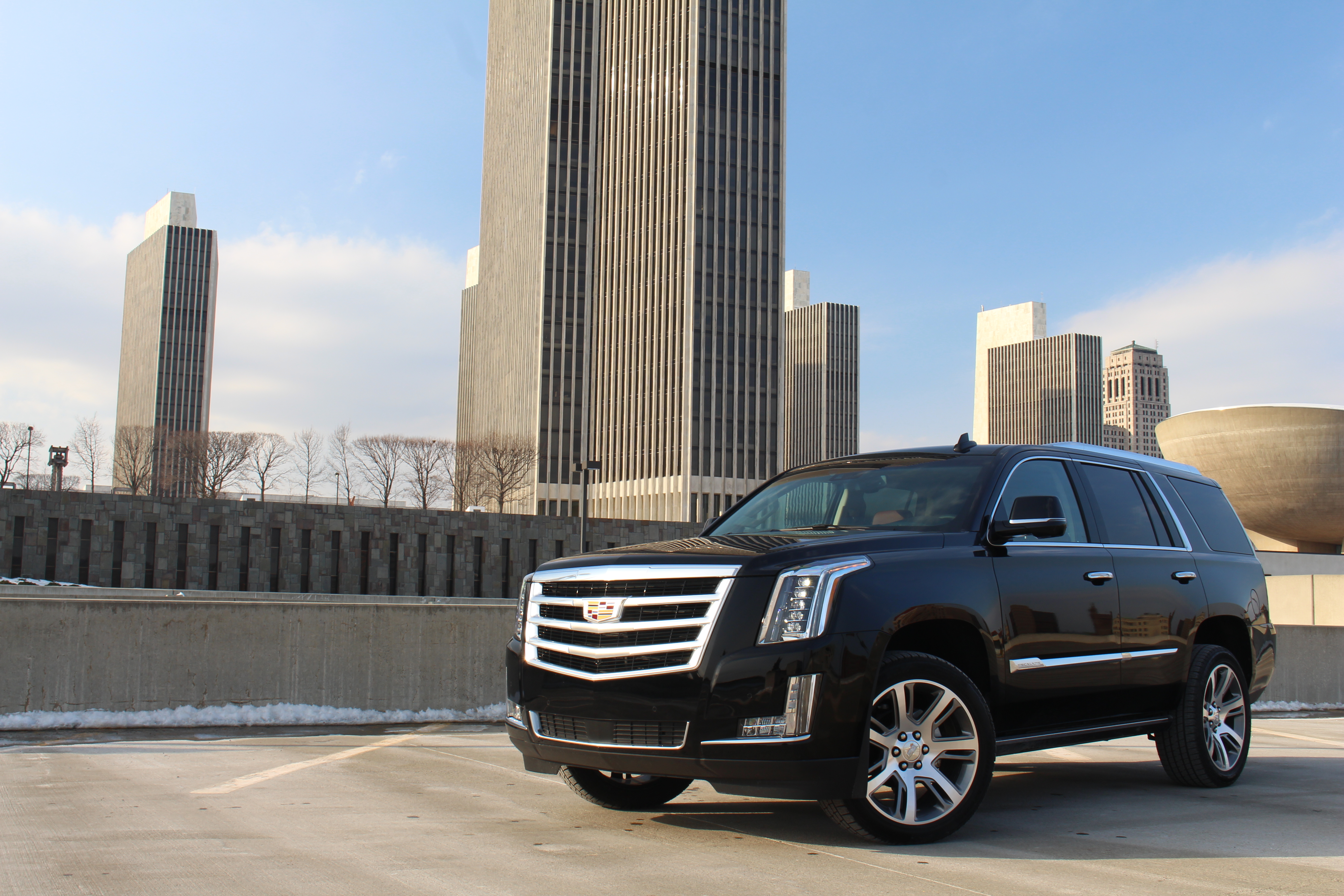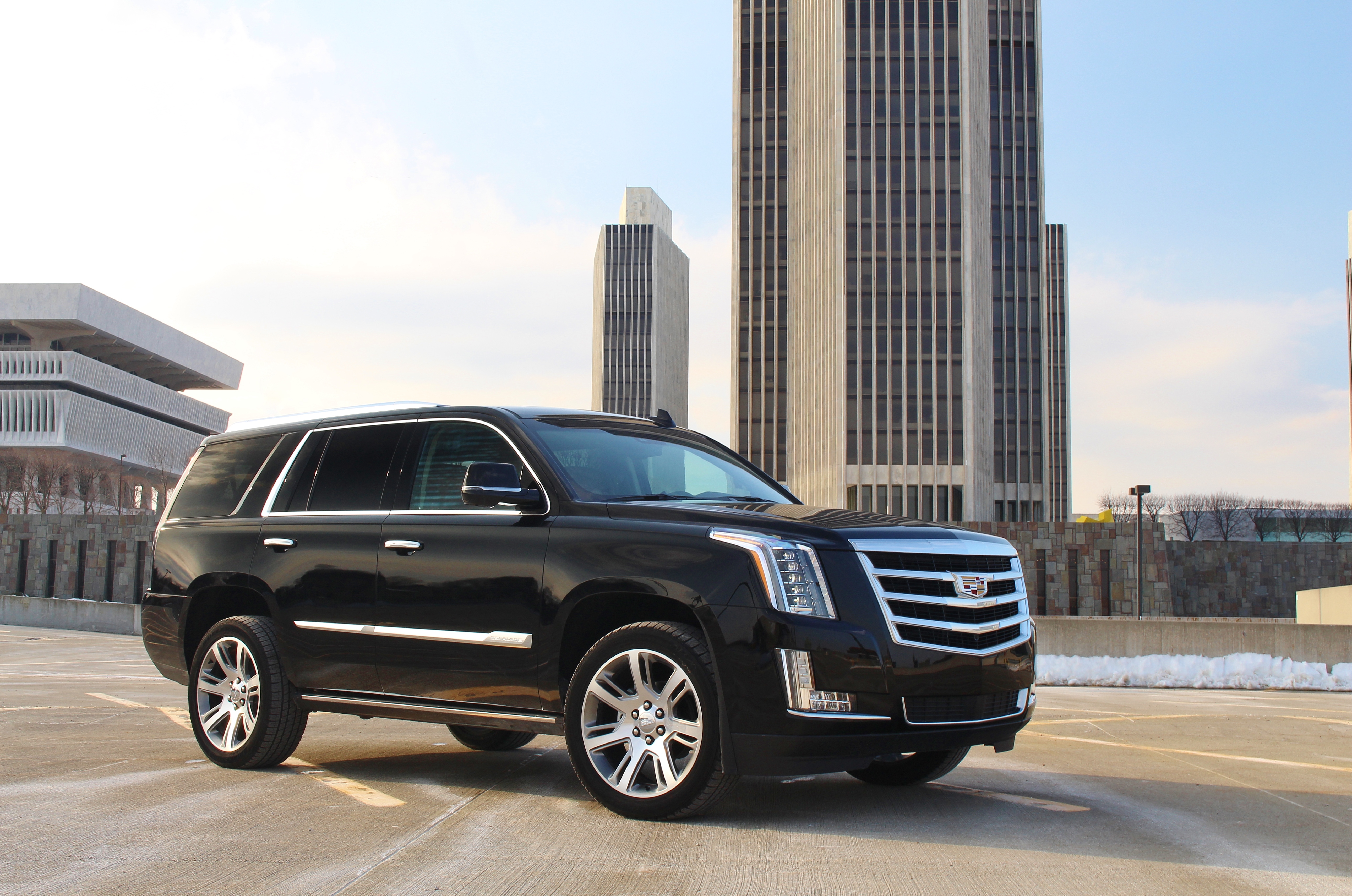Cadillac has incorporated the best technology they have to offer in the new Escalade, and that includes Magnetic Ride Control. It’s the world’s fastest reacting suspension system, providing better driving performance to the full size SUV. Two driving modes, touring and sport, provide two very distinct driving profiles. When using sport mode, the Escalade handles exceptionally well given its size and less-than-dynamic stance. Touring mode provides a more relaxed ride, something more fitting of a luxury limo like this Escalade. The only letdown of the entire driving experience was the long pedal travel and soft bite of the brakes. There’s a lot of mass behind the big chrome grille and we’d like to have more confidence that we can stop it when the time comes.