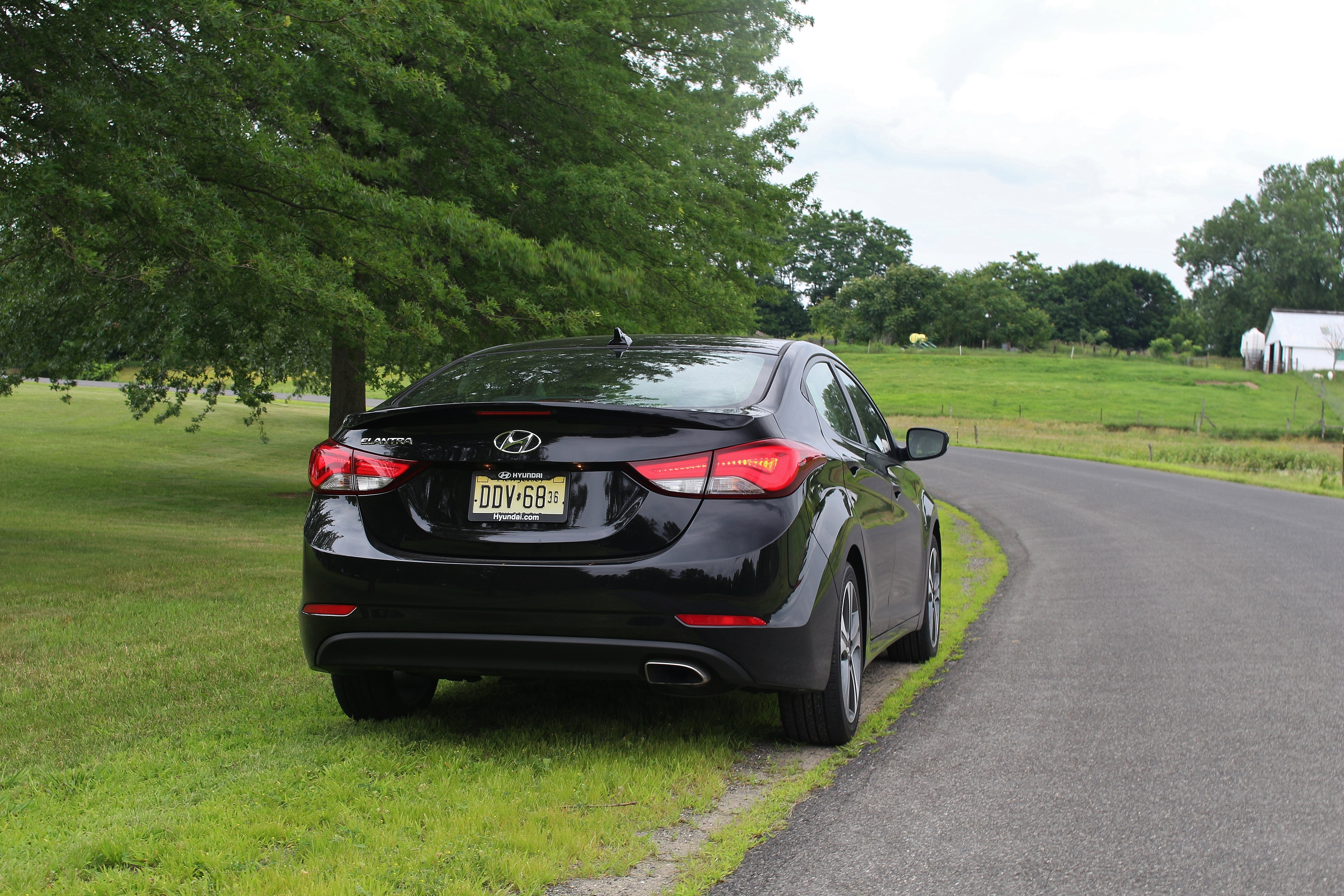 You cannot go wrong with Hyundai’s infotainment system. Its menus are easy to navigate. No one wants to spend a lot of time learning how to use a navigation system, and Hyundai’s designers understand that. The Tech Package’s 7” touchscreen is bright and responsive. Throughout the interior you’ll find some hard plastics, but they incorporated well with other textures and designs to continue that premium appearance. When I popped open the trunk for the first time, I was amazed by the amount of cargo space (14.8 cubic feet). Overall, the interior is roomy, too. The Elantra has more front leg room than the Toyota Corolla and Honda Civic. The only notable issue was a slight lack of headroom for those over six feet tall.