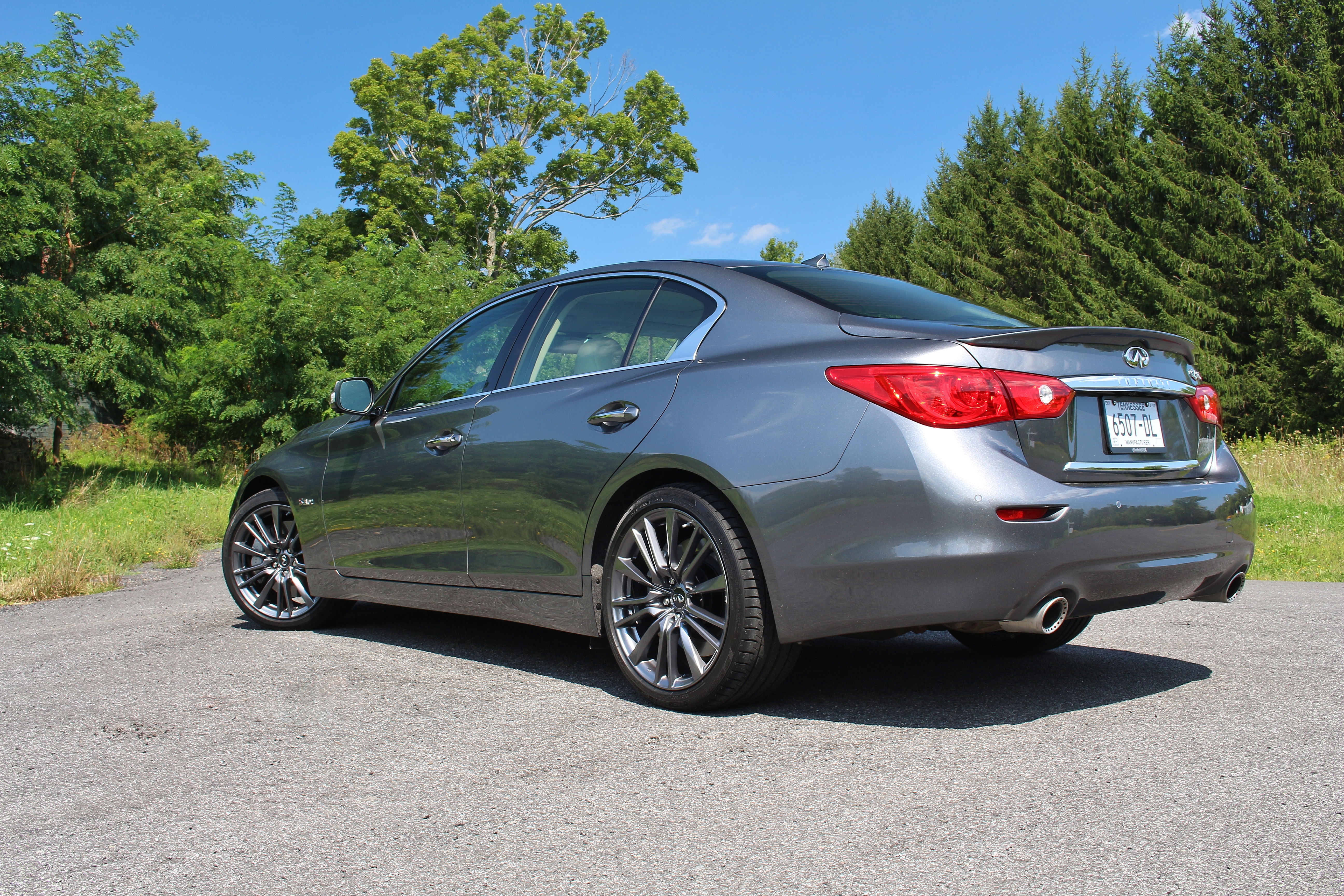 Infiniti didn’t stop with the engine and steering, however. There are new electronic dampers and some new chassis programming. The ride remained comfortable in all drive setting with noticeable changes as you cycle through the settings. This is still a great chassis, never coming unhinged over bumps. Our car was rear-drive model with staggered summer tires, something similar offered by the competition at BMW and Mercedes. An all-wheel-drive model is also available.