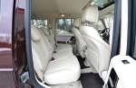 Mercedes increased the size of the new G-Class, giving it more interior volume. Outside, the G has lost a little bit of its sharpness. The bumpers and wheel arches are more smoothly integrated into the wider and longer passenger compartment. Panel gaps have also shrunk, subconsciously taking away some of the truck-like vibe of the previous generations. This is a visually softer G, but a G nonetheless. The distinctive door handles, round headlights, high-mounted indicator lights, and spare tire carrier all remain. Finished in the unique Rubellite Red Metallic, our G550 shone a crimson red in the sun and a deep purple in the shade. It also set off the chrome grill guard and 8-spoke alloy wheels with class.