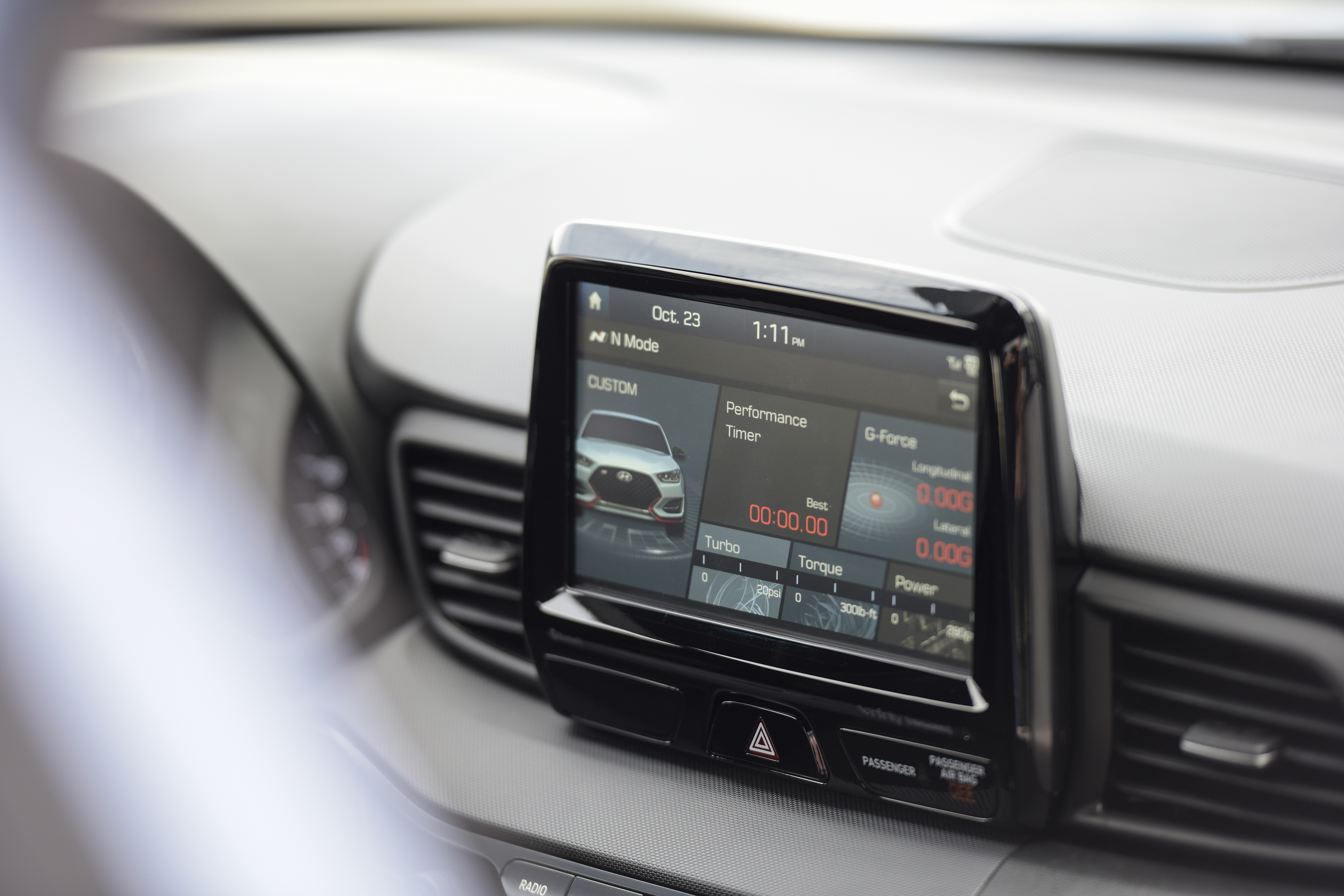 Special praise has to be given to the N Custom drive mode setting. With a second tap of the N Mode drive selector, the driver can enable a custom configuration. Easily set via the Veloster’s infotainment screen, you can individually adjust each aspect of the powertrain and chassis. Engine throttle response, transmission rev-matching, exhaust sound, differential settings, suspension damping rates, steering feel, and stability control can all be individually adjusted. We haven’t experienced such a vast list of settings that are so quickly and easily changed. Once you’ve got your favorite setup, it’s available with two pushes of the N Mode button. We preferred to keep the dampers in their middle setting with deactivated rev-matching.