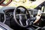 In the empty parking lot of Citi Field, the Sierra HD’s true size was without context. Once you put the Sierra HD in traffic, however, you realize just how big this truck is. Not necessarily in length or width, unless you extend the towing mirrors, but in sheer height. Standing in front of the truck, an average side adult male won’t be able to see over the hood. This gives the Sierra HD an equivalent rear-view mirror intimidation factor of an 18-wheeler. The towering height has required some clever engineering to make cargo accessibility easy for humans. The bed lift-in height is an inch lower than the previous generation truck. And aAfter a bit of practice with the six-function MultiPro tailgate, we looked like professionals using the full-width step to climb in and out of the bed. There’s also a new set of side steps at the front of the bed in addition to the steps integrated into the rear bumper. When you’re tying down at all four corners, this makes the process much easier. But as we learned shortly before our photo session, this big rig makes spray washing in a tight car-wash bay a damp and frustrating affair. I’m fairly certain I got nearly as wet as the truck did, and I couldn’t even reach the center of the hood when it came time to towel the truck off.