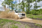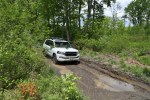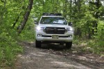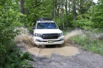 The Land Cruiser features 8.9 inches of ground clearance, a 32 degree angle of approach, and an impressive 27.55 inch fording depth. You won’t find another full-size SUV that can handle that kind of standing water. Spring rains had softened our trail and filled the lowest point with only 8 inches of standing water, meaning we could showboat a little. With a full-time four-wheel-drive system, there’s almost no preparation required from the helm. We didn’t encounter any terrain that required locking the center differential and the few rocks we were able to crawl didn’t stress Toyota’s KDSS system, which allows the stabilizer bars to be hydraulically relaxed for increased suspension articulation off-road.