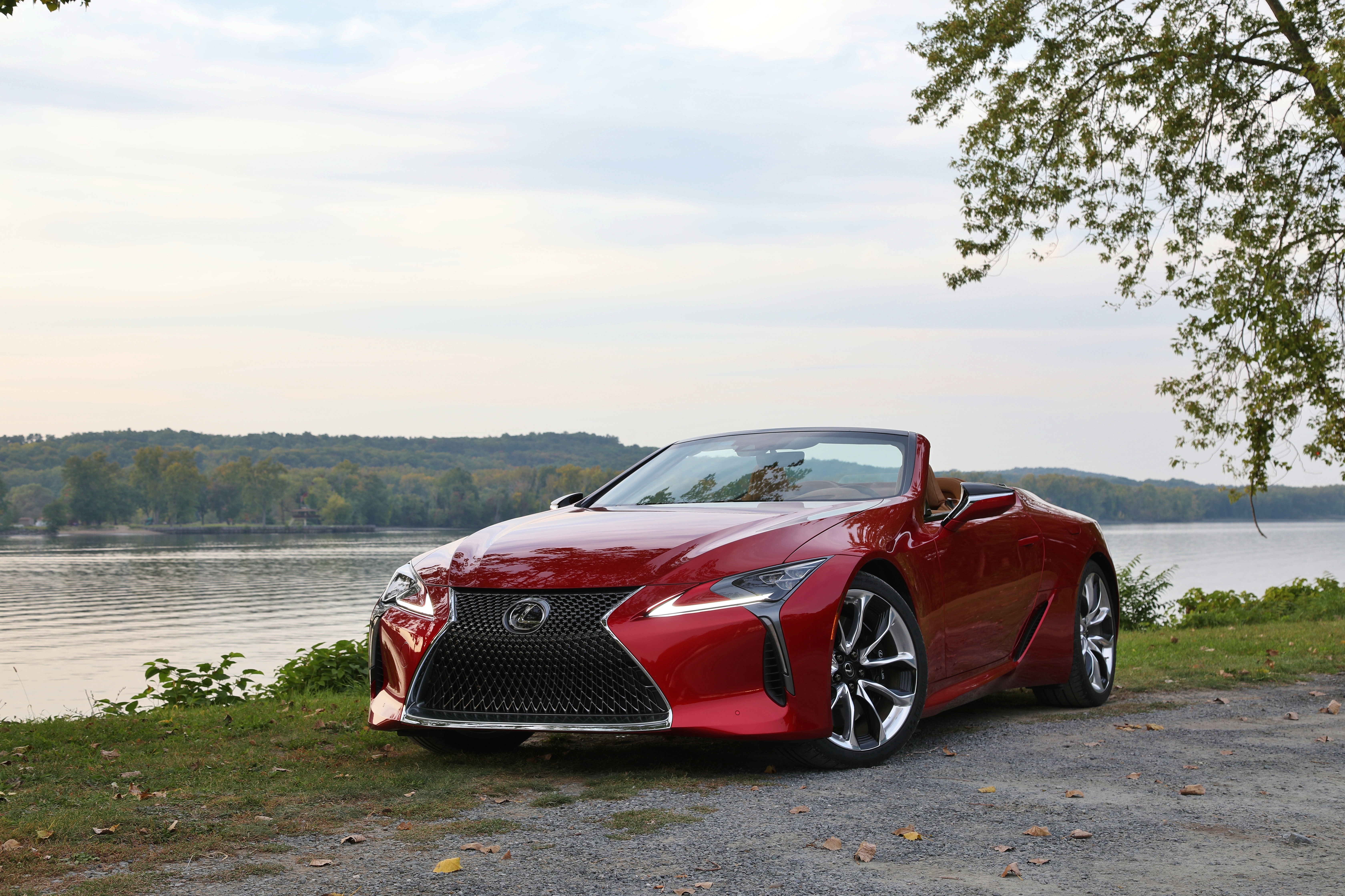 Removing the fixed roof hasn’t negatively impacted the stiffness of the LC’s chassis, comparing the Convertible to our review of the LC500 Coupe a few years ago. Additional chassis and strut tower bracing help make up for the change. Lexus also extensively retuned the suspension to compensate for the shift in weight distribution. Beyond the expected dampers and coils adjustments, the bushings and other components have been replaced and Lexus’ Adaptive Variable Suspension has been tuned specifically for the Convertible. While that might be interesting for the technical minded, there’s almost no time to stop and appreciate those subtle changes when the top retracts in only 15 seconds. With the roof automatically stored neatly beneath the rear deck, Lexus’ 5.0L V8 takes a predominate role in the driving experience. Unchanged from the Coupe, it makes 471 horsepower and 398 lb-ft of torque. That’s good for a 0-60 mph run in only 4.6 seconds. While the acceleration is ample, the symphony that erupts at 3,500 rpm is what keeps you coming back. Under throttle, a combination of induction and exhaust noise is accented by pops and bangs as the 10-speed automatic changes gears. If the autumn scenery wasn’t incentive enough to lower the roof, the naturally aspirated V8 demands it. If you’re an audiophile, however, the LC’s Mark Levinson audio system will let you down. Despite being tuned for open-top audio, the system just doesn’t have the power or clarity fitting of this luxury flagship.