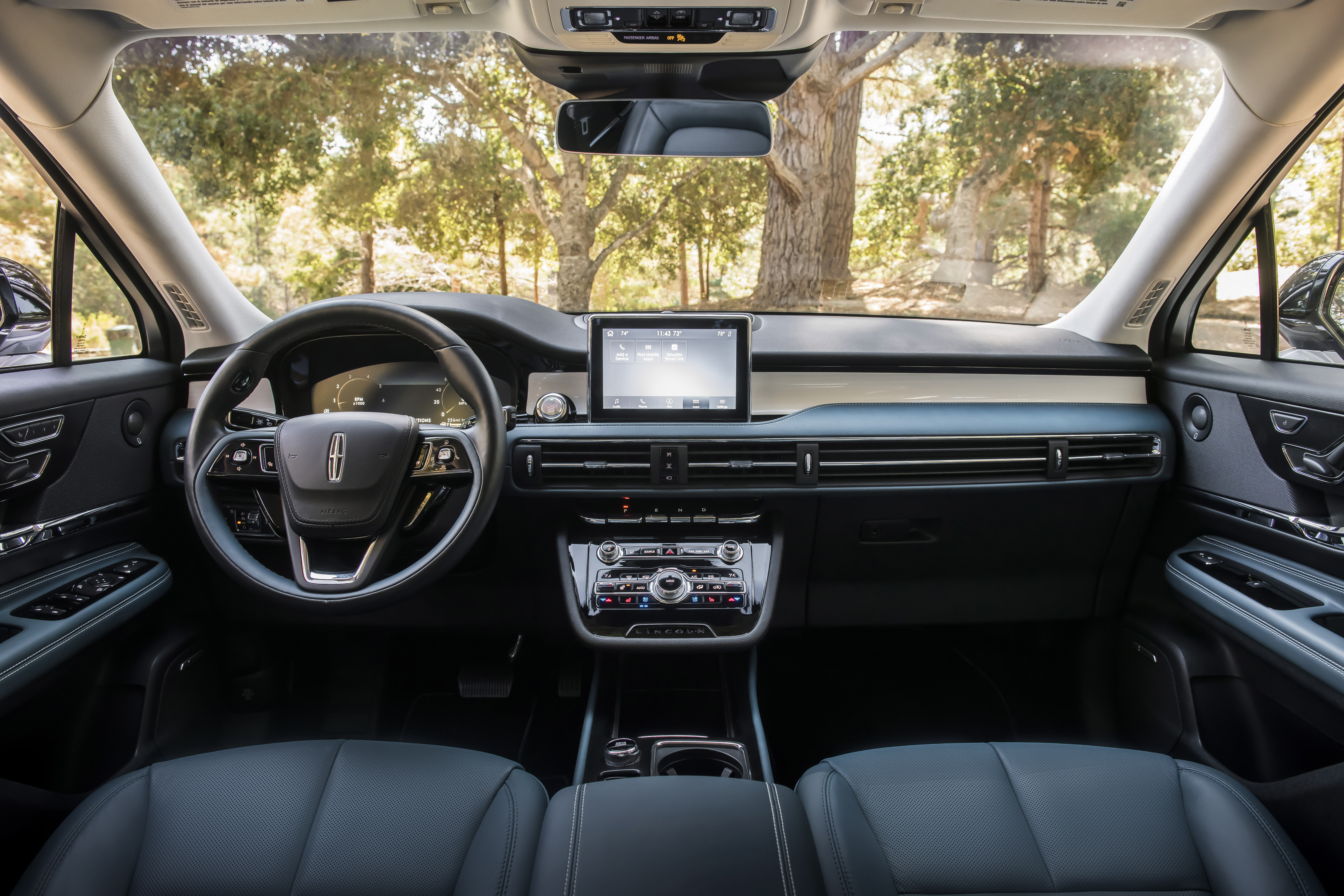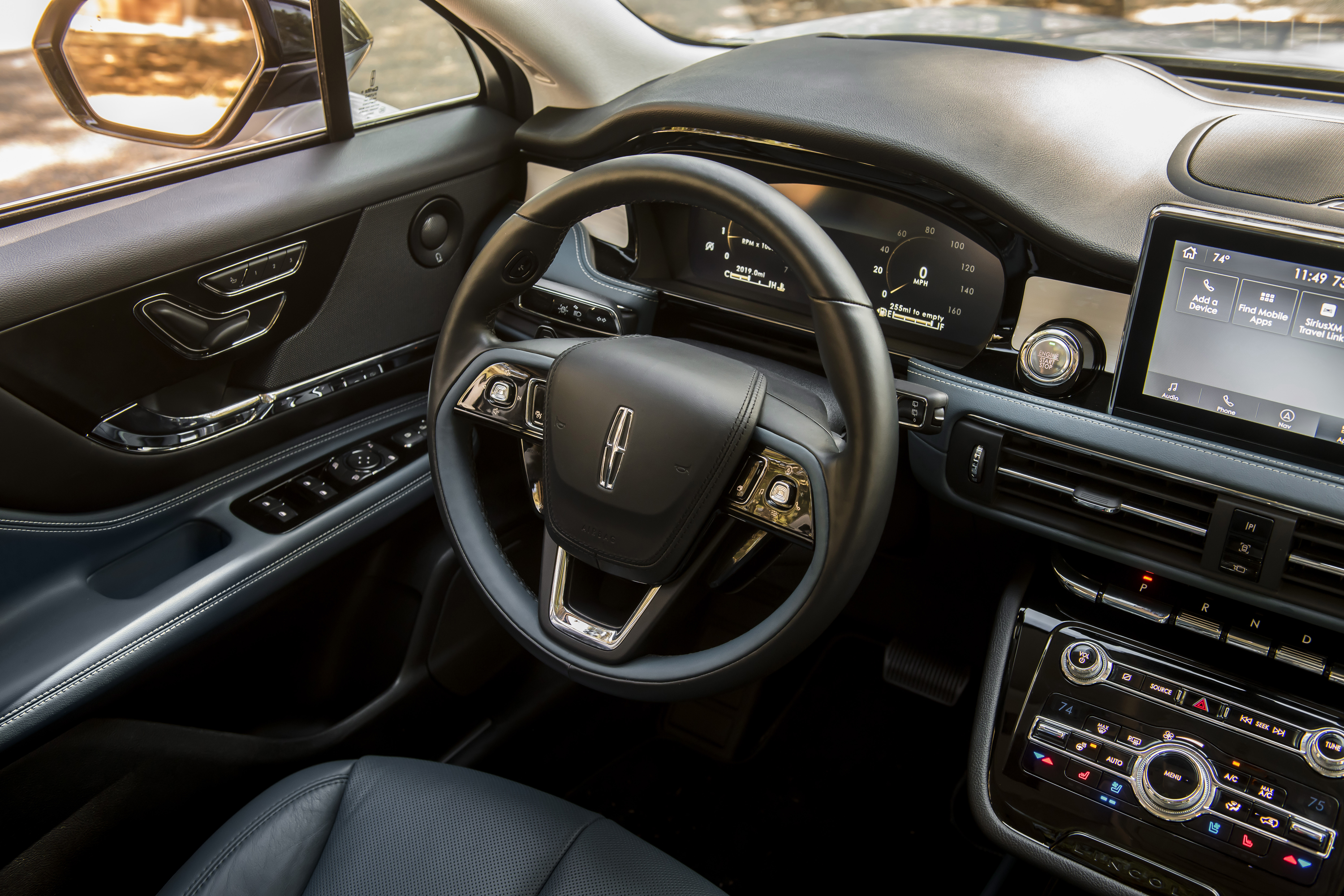 The Corsair comes standard with a 2.0T engine and 8-speed automatic transmission. Our tester featured the optional all-wheel-drive system and 2.3T engine, good for 280hp and 310lb-ft torque. But as with the design and interior, the driving experience is more focused on serenity than sportiness. An all-new rear suspension is designed to absorb impacts and provide a smooth ride. Despite the large wheels and slim sidewalls, the Corsair delivers a comfortable and fairly connected ride. Not only does the ride help filter out the world around you, Lincoln engineered the Corsair’s body to do the same. A dual-wall dashboard, dual-pane glass, and Active Noise Control keep the cabin so quiet, you’re left hearing the air flow over the door seals. Until, that is, you turn on the radio.