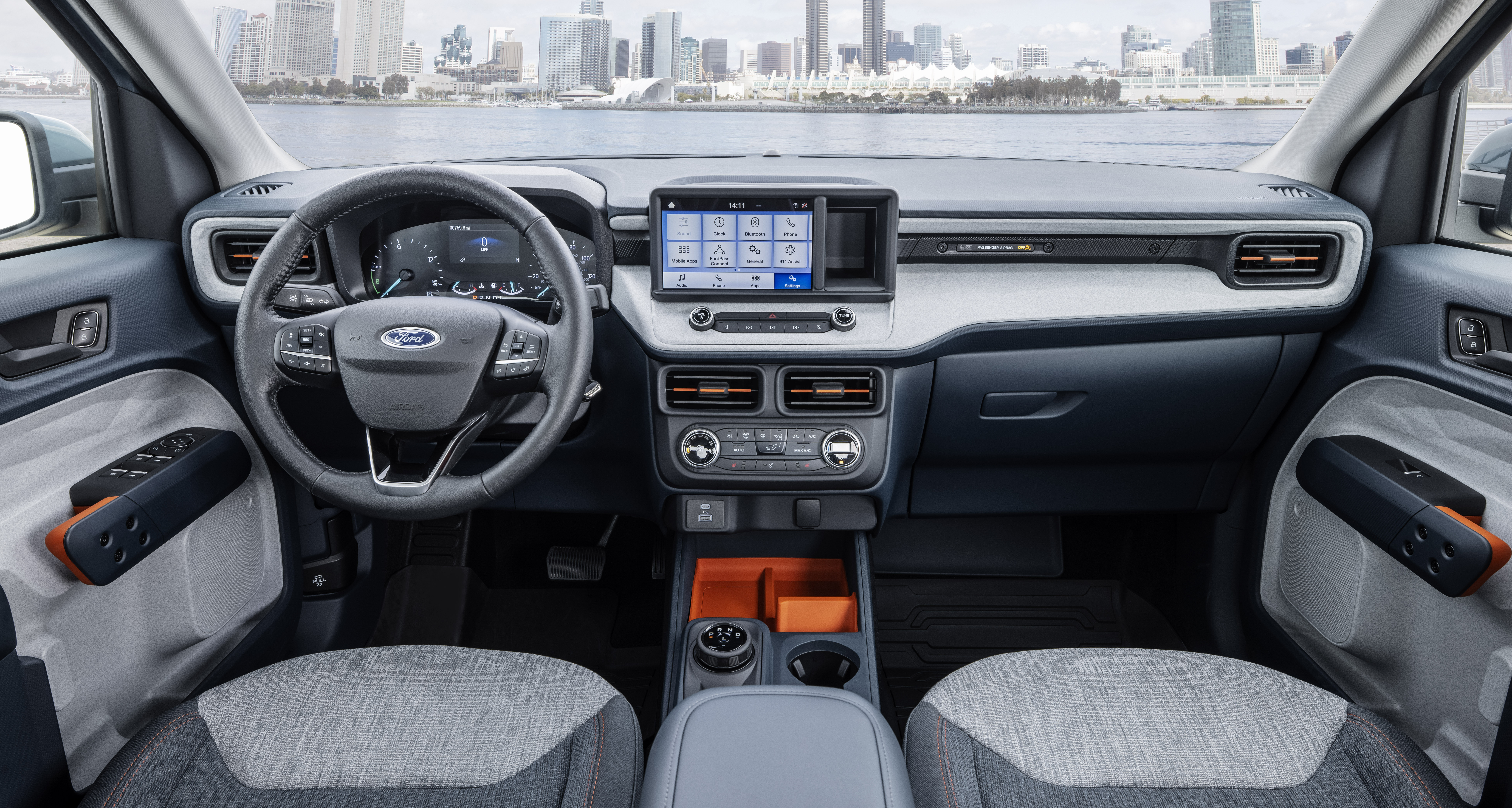 We praised Ford earlier this year for maximizing the Bronco Sport’s capabilities and interior features, and the Maverick looks to follow directly in those footsteps. The standard 8-inch touch screen features Apple CarPlay and Android Auto and has FordPass Connect for connected driving and phone integration with an available app. Ford alsoused a mix of surface textures and finishes, plus pops of color, to make the cabin feel modern and unique. There’s also real thought into functionality, as well. The door armrests have a split to allow one-liter water bottles to be stored upright (editors note: I get made fun of for complaining about how there’s never any place to store my 1L water bottle in cars all the time….vindication is mine!), and the door pockets have enough vertical clearance to store tablets and notebooks. In back, there’s storage bins under the rear seats, and even a bin in the bed to store a trailer hitch onboard. Ford will also delight home 3D printing enthusiasts with the Ford Integrated Tether System. FITS is a standard slot system that allows for mounting accessories to the back of the front console Standard offerings include extra cupholders, a storage bin, cable organizer, hooks for bags and purses, or storage dividers. But Ford will publish the slot geometry so makers can model and 3D-print their own accessories. There’s even slots under the rear seats to store multiple FITS devices.