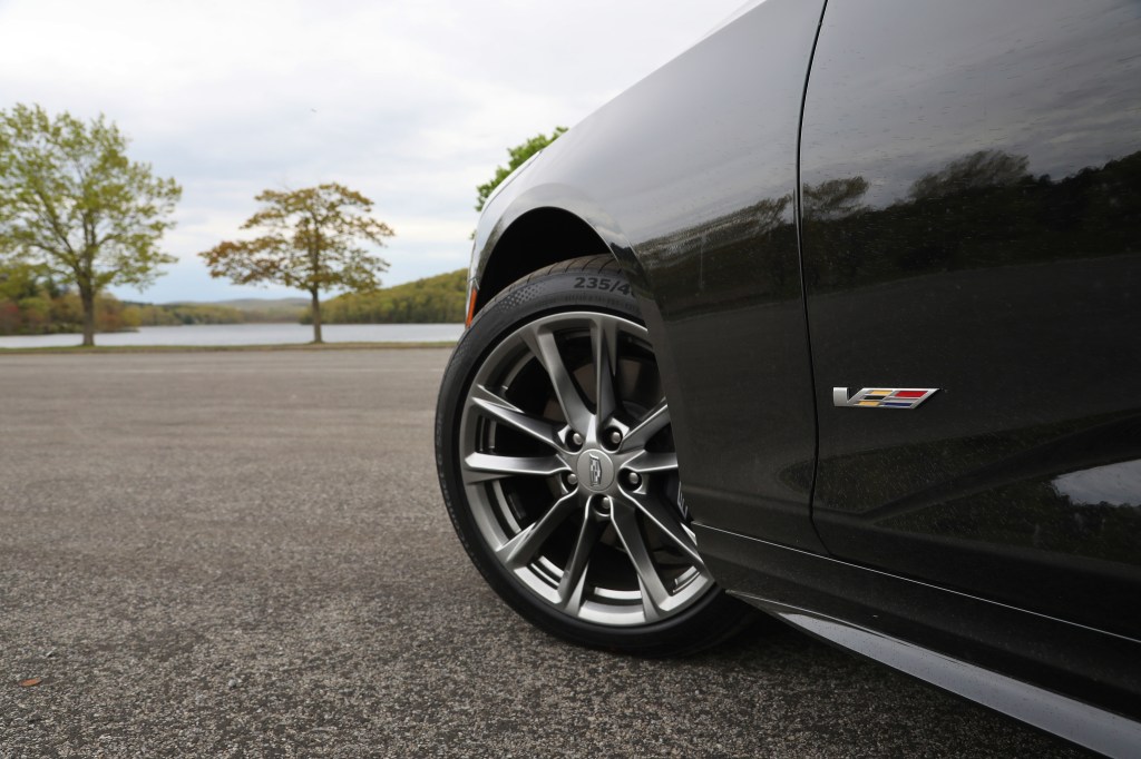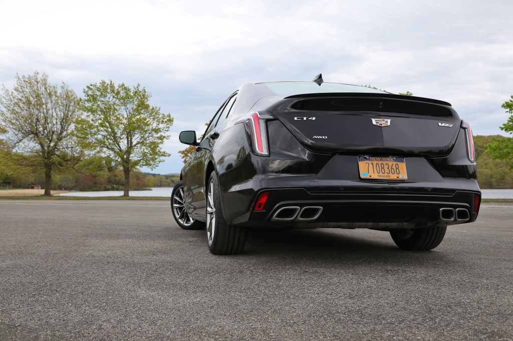 For the driver, the CT4 V-Series immediately feels right-sized. Fans of the venerable E46 3-Series and B5 A4 will revel in a platform with a familiar wheelbase. The CT4’s traditional sedan shape also benefits headroom and visibility. Rear legroom can be made if the front seat passengers are willing to forego some of theirs, but our tester’s all-wheel-drive system made its presence known in the form of some front footwell intrusions. Mild ergonomic complaints aside, the Cadillac’s bolstered seats and thick rimmed wheel are nice sporting cues. Outside, our Jet Black tester helps hides some of the V-Series unique trimmings; the darker accents, grilles, rocker extensions, and rear spoiler. What’s immediately clear, in any hue, is that the CT4 is a fine looking car. Sharp styling, bold LED light designs, and timeless V-Series wheels round out an excellent design. And unlike its big brother, there’s no fake rear 3/4 glass to complain about.