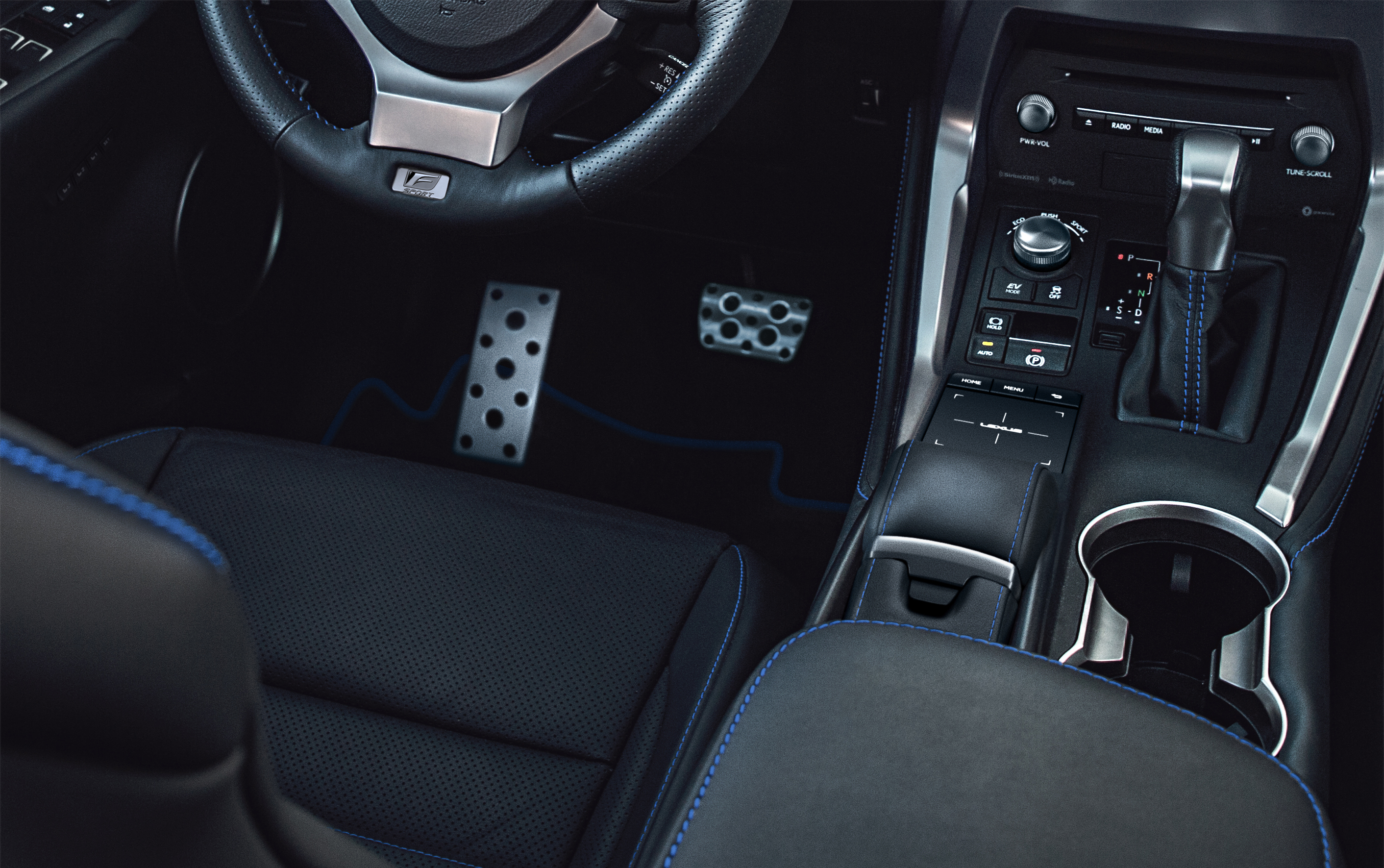 The NX 300h F Sport Black Line is a 1000-unit special edition model that comes with several visual distinctions, some of which have not available on any NX to date. Our Grecian Water tester’s bright and deeply metallic blue hue is one of three special exterior colors along side Ultra White and Obsidian. The F Sport model also receives the brand’s sportier front grille and bumper design and 18″ dark chrome wheels. Black mirror caps and color-keyed fender arches help set the Black Line apart from any other NX. Inside, the blue theme continues with blue stitching and floor mats with matching blue piping. Its a refreshingly bold color for a crossover, and the extra flair from the painted wheel arches give this Black Line NX a bit more glam. One special perk of being a lucky Black Line Special Edition owner is a customized two-piece set of travel cases from Zero Halliburton. That means your NX will arrive ready for wherever the road takes you.