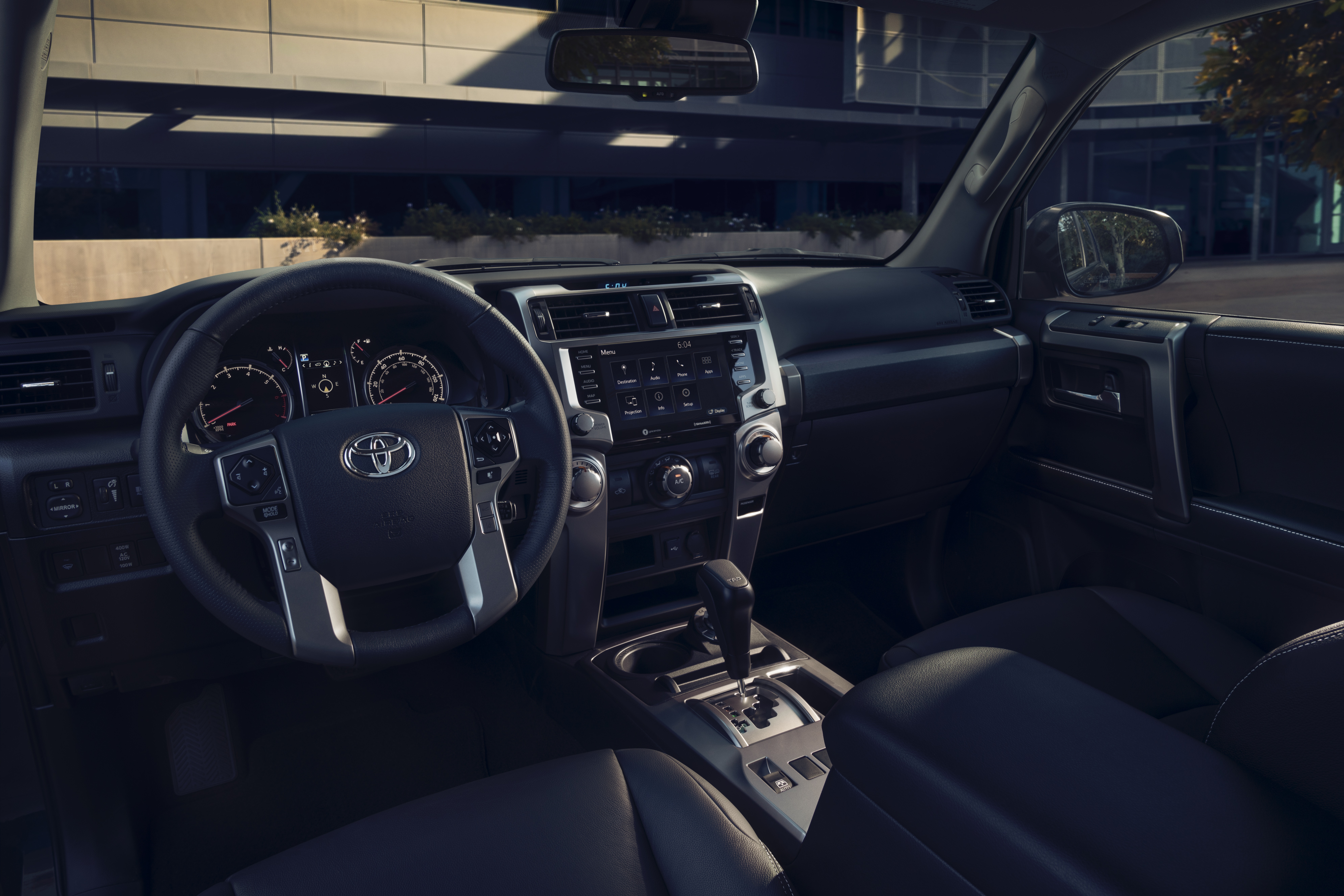 Unlike the rock-crawling TRD Pro and all-terrain TRD Off-Road, the TRD Sport focuses on being the best 4Runner for the road. The TRD Sport is distinguishable with its non-functional TRD-style hood scoop and color-keyed front grille accents in place of the Limited’s chrome accents. Both trims feature machine-faced 20″ wheels with all-season tires, hinting at their road-going focus. They also share the same interesting raked stance. The TRD Sport adopts the Limited’s Cross-Lined Relative Absorber System (X-REAS) suspension. The two key features of the X-REAS system are the adjustable damping force of the shock absorbers and the center control absorber. The system cross-links the shock absorbers on opposite corners of the 4Runner to offset the opposing inputs. By offsetting the opposite corners, like an X, the 4Runner TRD Sport’s body motions are better controlled. Imagine turning into a tight corner – the outside front wheel receives a large amount of the weight transfer. The X-REAS system reacts by stiffening that shock absorber and softening the opposite rear and allowing the body to stay more level.